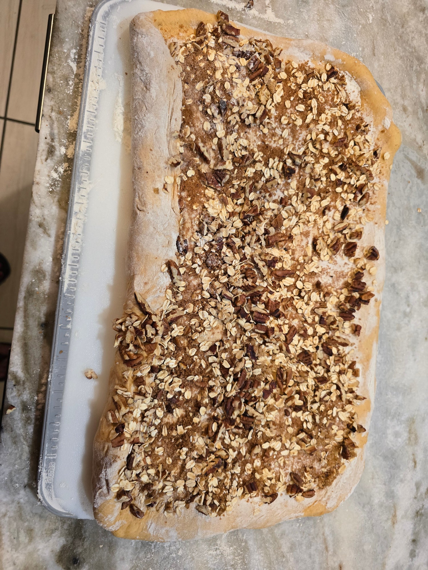 The blend of spices in this recipe was inspired by my mother-in-law’s amazing pumpkin pie—rich, aromatic, and perfectly balanced. And because I can never resist a little texture and surprise, I added a pecan-brown sugar-oat swirl that gives every slice extra flavor and just the right amount of crunch—like the perfect pie crust baked right into your bread.