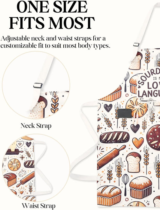 Charming Sourdough Apron for Women with Handy Pockets - Perfect Baking Gifts for Culinary Enthusiasts, Stylish Adjustable Neck Strap Included