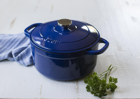 Experience Culinary Excellence with the Lodge 5.5Qt Indigo Enameled Dutch Oven