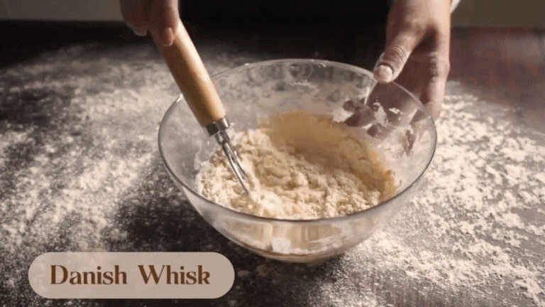 - Prepare Your Dough – Mix ingredients with the Danish whisk until smooth and elastic.